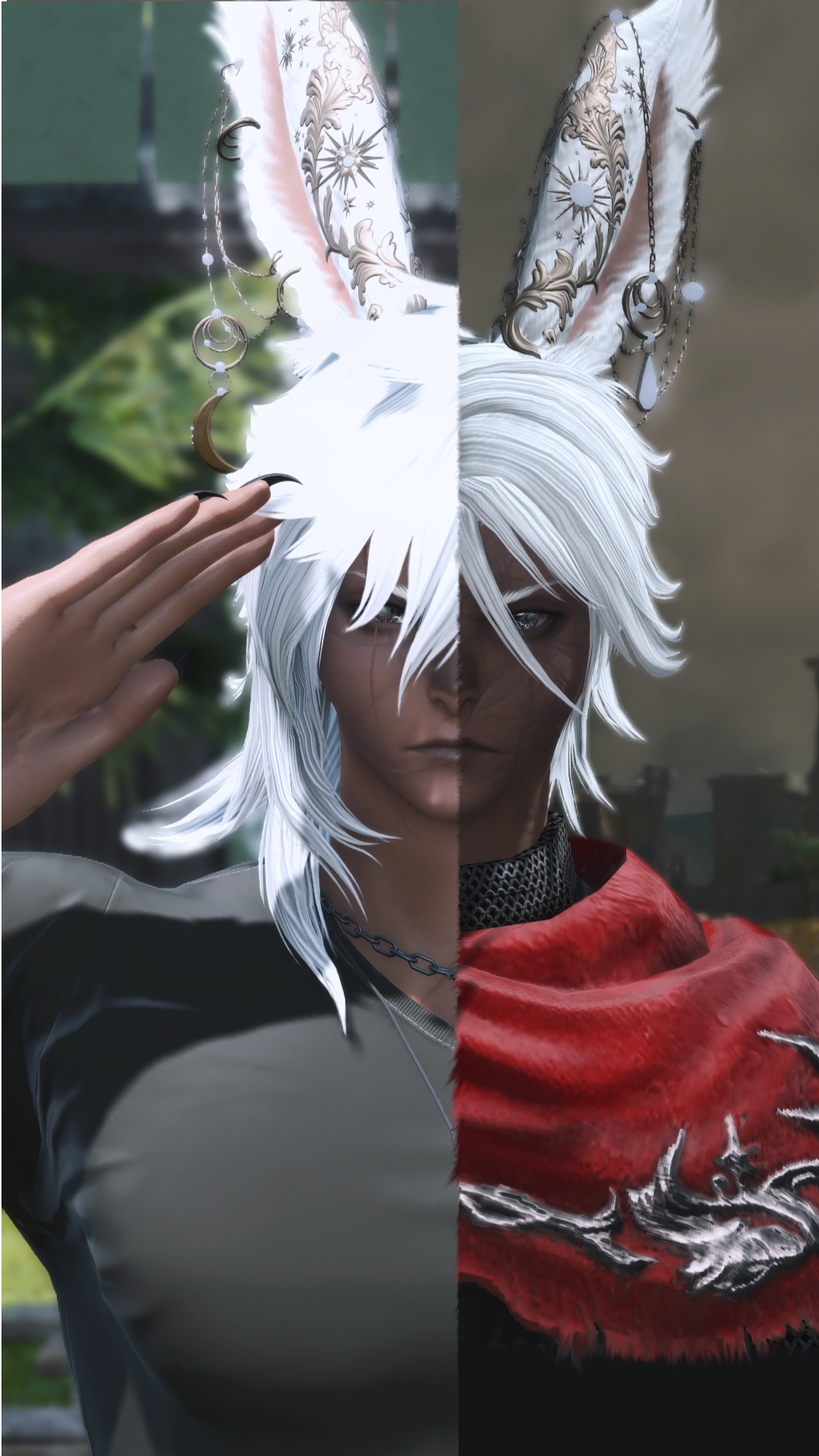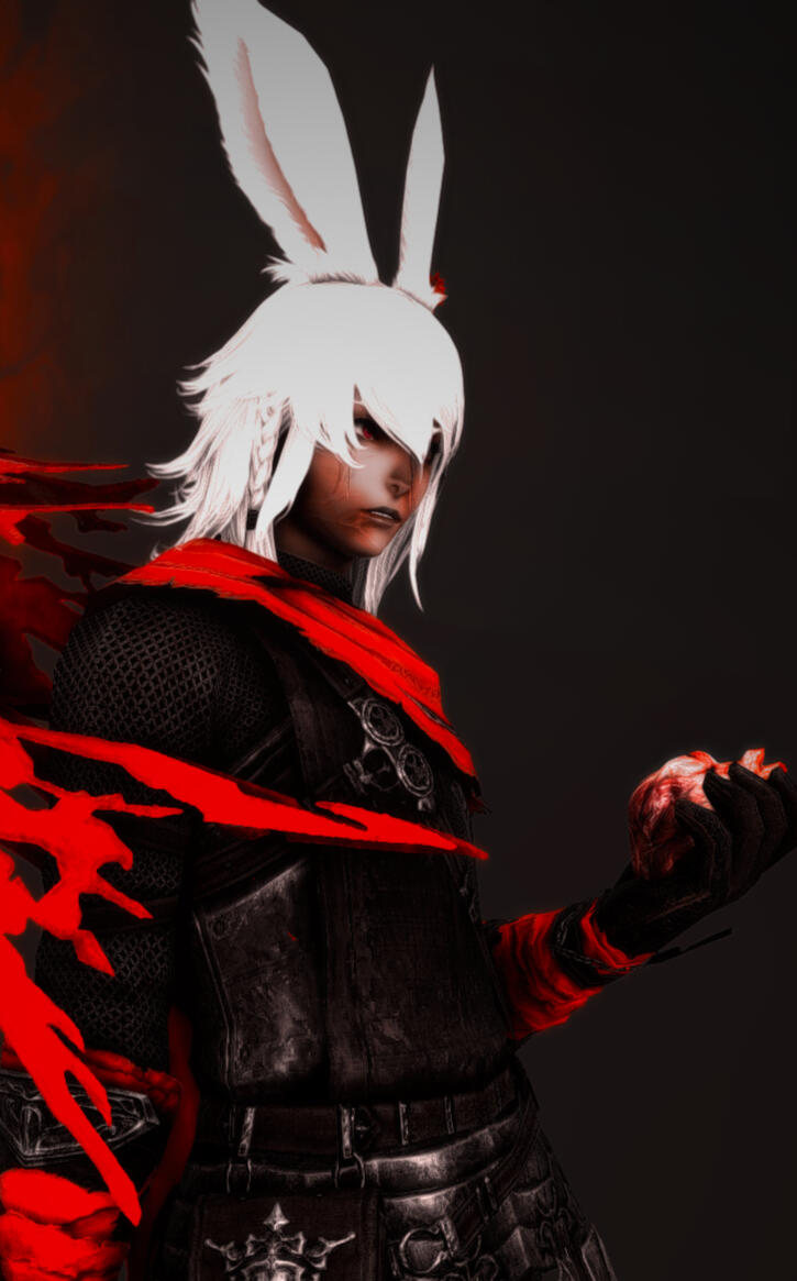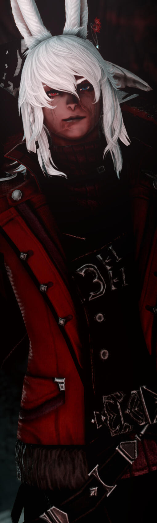Born Váli Golmarr; he was brought into the world 260 years ago, going through a relatively normal upbringing as far as Vieran males go.--ShadeboundWhen he came of age, he was taken from the village by one of the older men, trained to protect his village and keep outsiders as far away from the wood as possible. He was trained in an ancient fighting style known to Eorzeans as "Reaper", but to his Kin, the style was known colloquially as "Shadebound:". The training was hard, with Miki seeing everything horrible that could happen to him short of his own demise. Eventually, he emerged from the ancient temple that the elders used to train the men of the village, scarred physically, emotionally...but sane.--LoveSome 100 years ago, he met his beloved, Mjrn. The two met on one of his many trips back and forth to the village to get medicines. Their romance was as a whirlwind, with the two becoming inseparable as time went along. Eventually, they wished to conceive a child but, alas...despite their repeated attempts, no fruit was born of their couplings. For a time...this was fine. The two grew closer and closer, being bonded to one another underneath the moonlight. Mjrn's soft giggles at her mates repeated attempts to make his own salves and balms and his hearty laughter at her attempt to lift his scythes echoing throughout the village.--The LeavingFinally...the day came where they conceived, and Mjrn revealed to Miki that she was with child. Miki was elated to have a child with a woman that he loved so dearly but in the back of his mind, he did not want to risk never seeing them again once they became of age.In hushed whispers the two resolved to leave the village, to set out on their own paths. The wails of the village women and children echoed through The Wood that day, as the two left, Golmarr village losing not only one of its best shamans, but a staunch protector of the wood as well.Miki set out to make a name for himself in Kugane and Doma, earning his title over the short few months he was there of "The Reaper in Red". He worked tirelessly to save up the money he needed to not only provide his beloved Mjrn with the home she deserved, but to keep her well, as her pregnancy was wrought with a myriad of complications. Eventually, he managed to scrimp and save enough gil to purchase passage to Eorzea post-calamity, an old Doman pirate being their guide into this new, strange world.