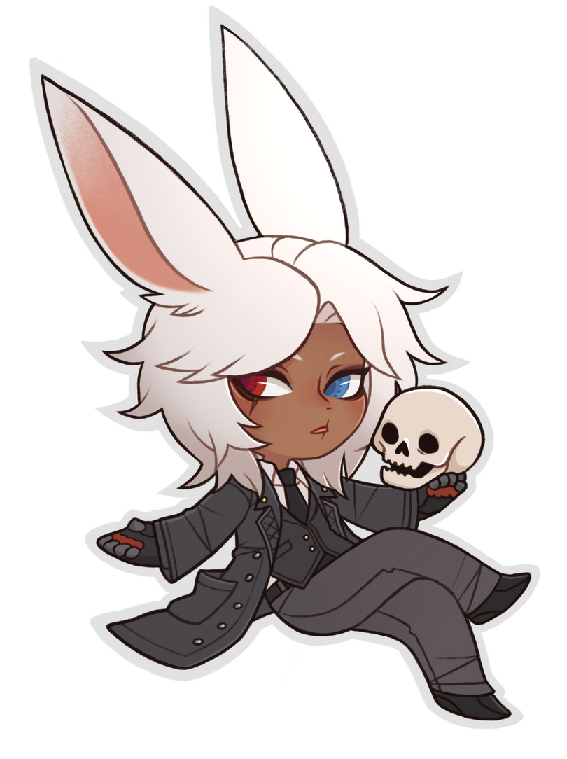 The Man with the Magitek Arm — An arm made of black steel, with small glowing golden veins running along it. He keeps it covered for the most part, but perhaps you have run into him performing maintenence, or even managed to see a hint of it between his gloves and his coat.Shiny Piece of Metal — Miki's a veteran of the Bozjan war who was awarded a medal for bravery, and for being gravely injured on the battlefield. Maybe your character was also there?The Scent of Death — A funeral director by trade, He carries the sick-sweet scent of funerary incenses, and is frequently seen along the roads driving a covered chocobo carriage.Lingua Mortuorum — Possessed of the ability to speak to the recently departed or, via a strong aetherial bond to a possession, the not so recent.Mjrn — His beloved, the name of the shadow that always stays behind him, flickering, moving.A New Life, A New Name — Are you on the run? A refugee, or a fugitve perhaps? Who better to help you establish a new identity than someone who can fake your demise.Twin Souls — The two swords he carries on his hips have a certain weight to them. Try to pick them up and you'll be surprised at how hefty they are!A Father — He seenms warm and inviting, always having a snack in his pocket and a box of bandages (chocobo and moogle kinds!) He's just a great dad.